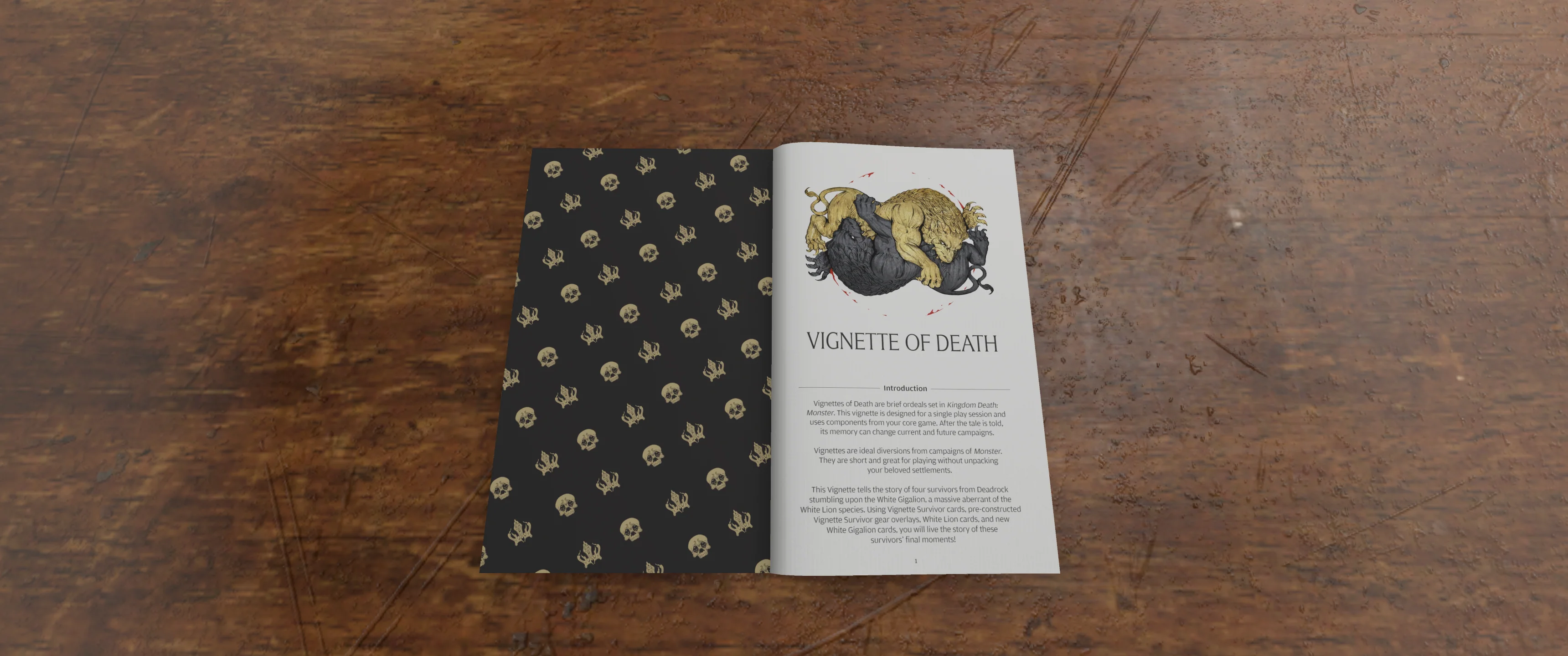 Vignettes of Death are ready-to-play stories set in the world of Kingdom Death: Monster. Vignettes of Death: White Gigalion tells the story of four unique survivors facing off with an aberrant form of a familiar foe. Use this Vignette in conjunction with your core game to battle the White Gigalion in a one-time showdown.