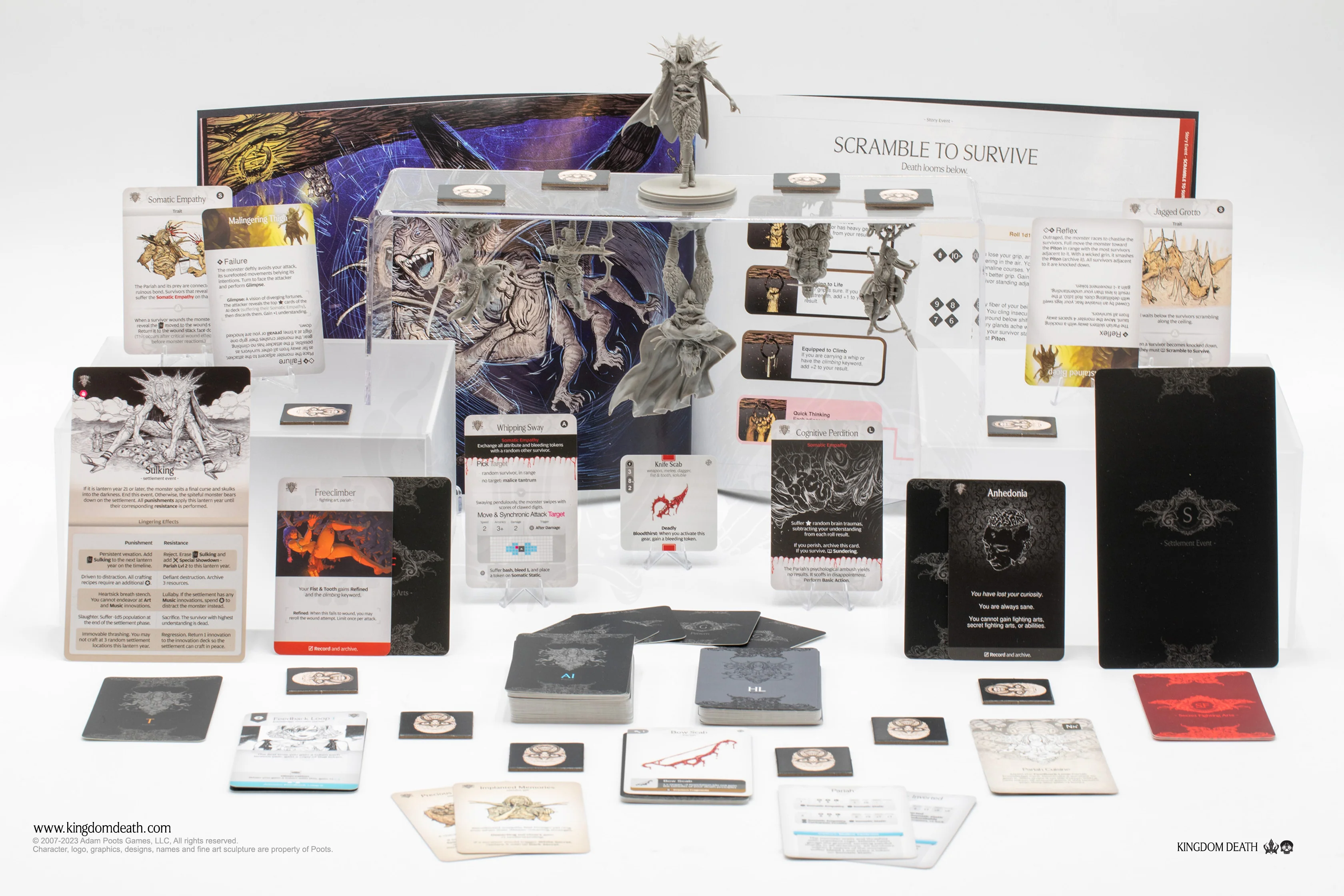 Adversaries and Allies Bundle is brimming with brand new content to energize your Kingdom Death: Monster campaigns. Two nemesis monster expansions and four wanderer expansions.
